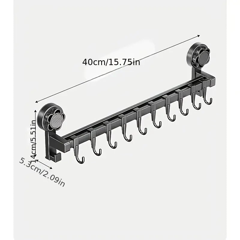 Suction Cup Wall-Mounted Kitchen & Bathroom Organizer - Multi-Purpose Storage Rack with Hooks for Utensils, Knives, Spatulas, Lids - Durable Plastic & Carbon Steel, No Assembly Needed, Space-Saving Design, Sleek Painted Finish, Sturdy Construction, Shelves.